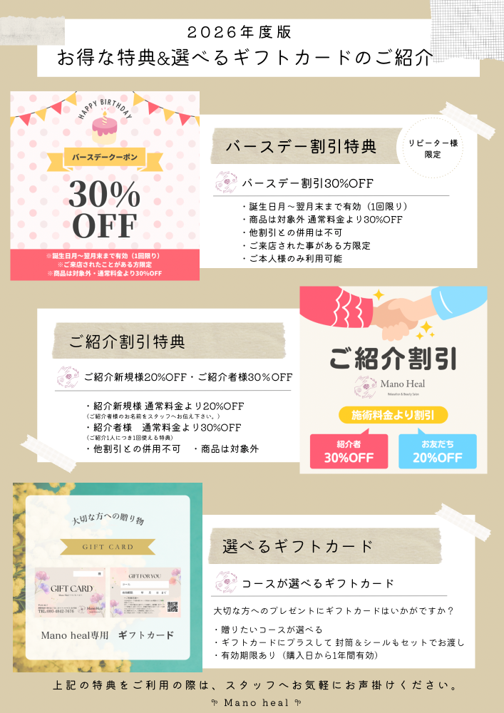 マノヒール は、完全個室のプライベートサロンとして、心と体の癒しをテーマにしています。全ての施術はオールハンドで行い、日々の疲れを解きほぐし、リラックスとリフレッシュの時間をご提供いたします。お客様一人ひとりに寄り添い、心地よいひとときをお過ごしいただけるよう心がけています。お気軽にご相談ください。